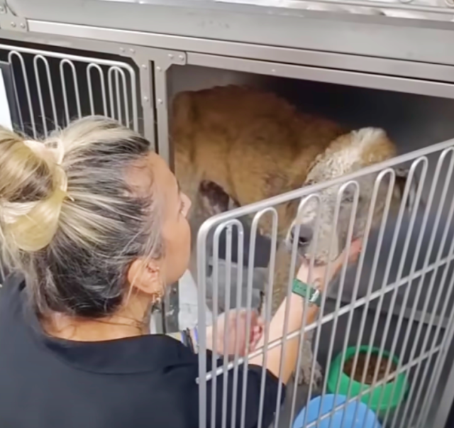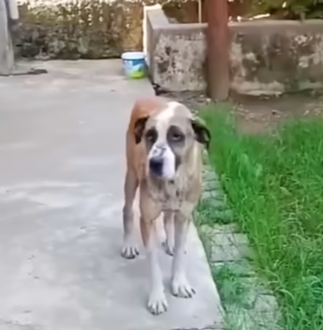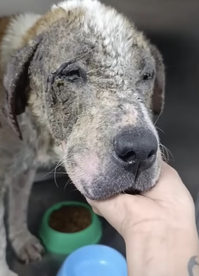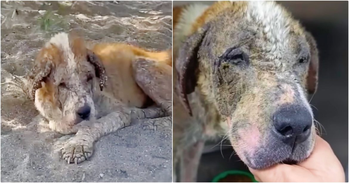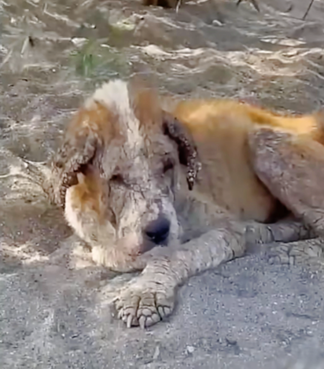 The poor dog’s face, ears, and legs were covered in thick, hardened skin, a painful result of untreated scabies. She had been neglected for so long that her body was barely holding on.