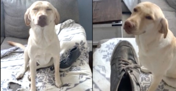 Sorry not sorry. Rudee the Lab has absolutely no regrets after chewing up Mom’s shoe, even after getting busted!