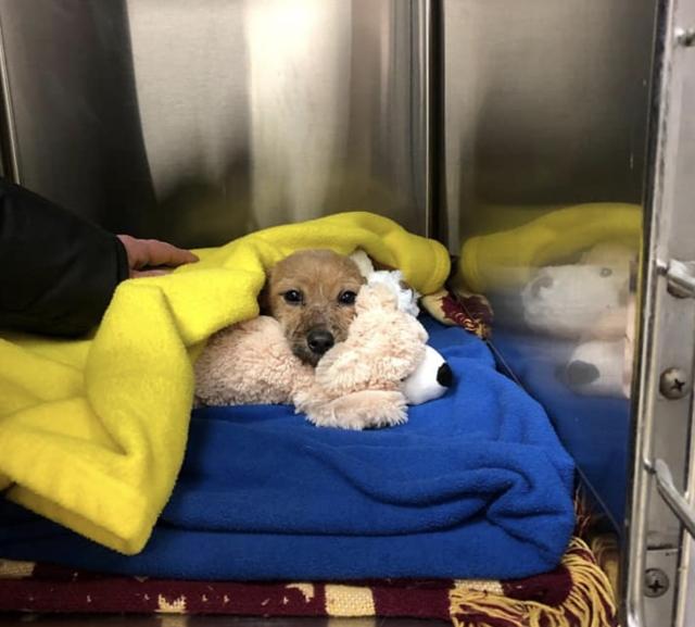 While the puppy was stabilizing, further exams revealed an untreated leg fracture believed to have come from a fall. The staff suspected he had been thrown from the bridge and had hit the ground instead of landing in water. Surgery was necessary, and he would need a long recovery.