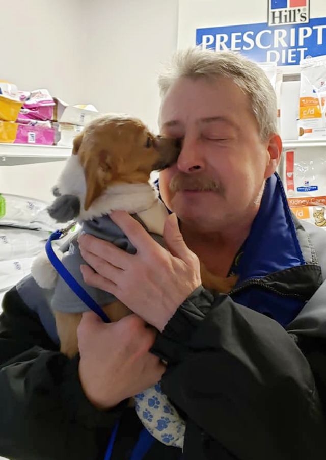 Hoelter’s niece saw one of the hospital’s posts and shared it with him. The family visited the clinic, and when Louie saw the man who had saved him, the room fell silent. Louie ran straight to Hoelter, showering him with affection.
