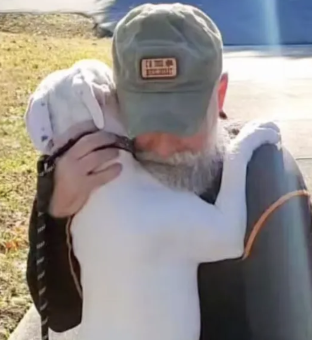 From the moment she met her future family, Maggie didn’t hesitate—she clung to her new dad, wrapping her paws around him as if she’d always known him. That powerful gesture, full of trust and affection, sealed their connection instantly.