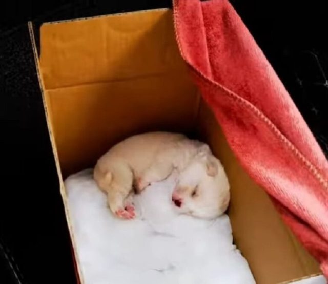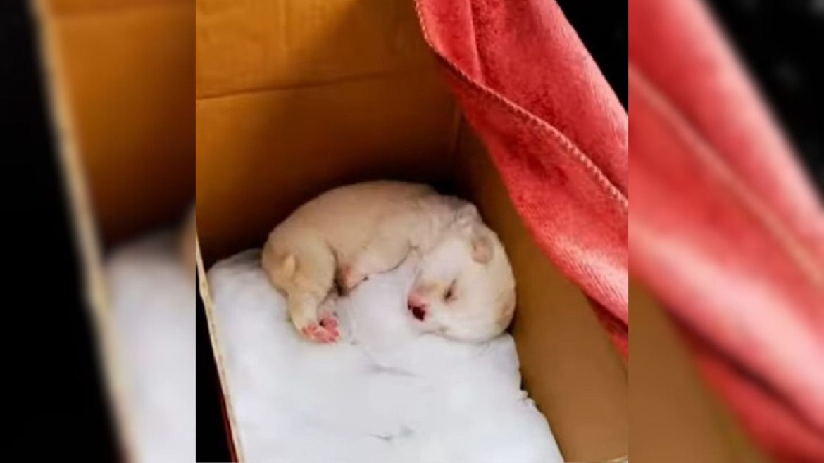 In today’s story, we focus on a one-week-old puppy who found himself in a dire situation after being taken from his mother. Abandoned in a plastic bag next to a trash can, the helpless pup cried out for the comfort of his mom, desperately trying to escape the confines of the bag.