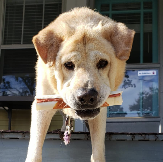 “Martin really is the bestest boy. His former owner said he is extremely gentle, especially with kids—he used to cuddle up with their grandkids so they could lie their heads on him for a nap.