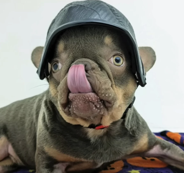 With his custom helmet and unshakable spirit, Mr. Muggles lives each day to the fullest—safe, protected, and deeply loved.