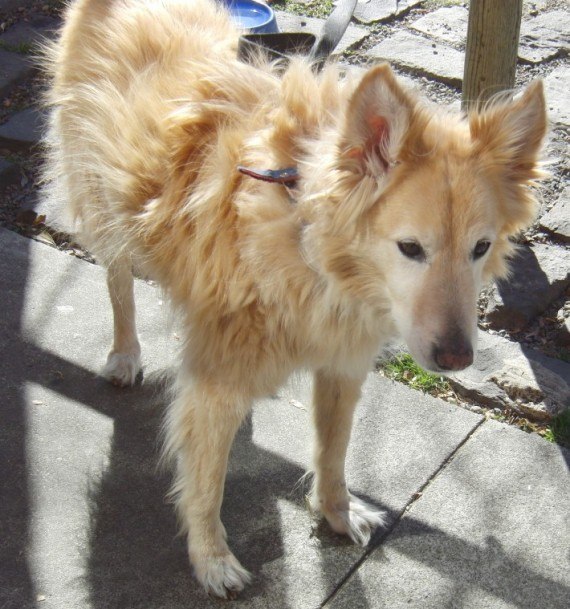 Here’s another example of a Husky/Golden Retriever mix. Not as fluffy as Phoebe, but still beautiful. Just look at those eyes!
