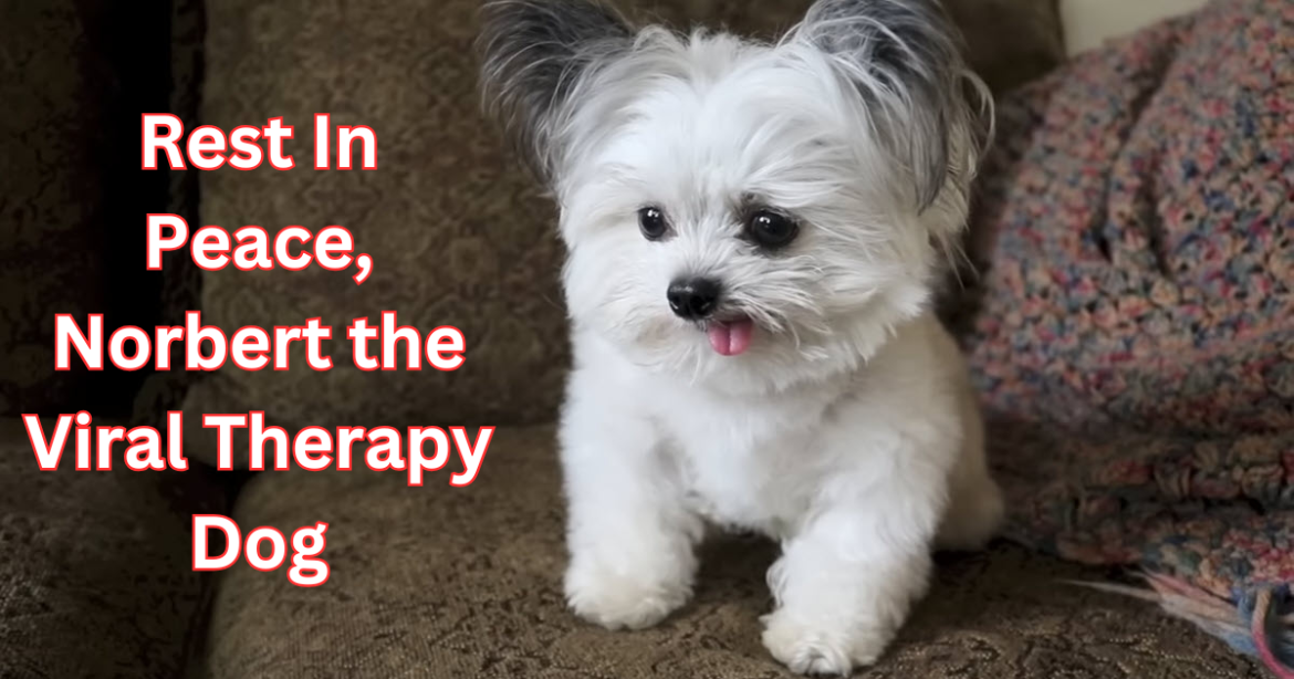 Norbert, the adorable therapy dog known worldwide for his high-fives and heartwarming presence, has passed away. His owner, Julie Steines, shared the devastating news on Instagram, revealing that the beloved pup died peacefully in her arms Sunday night, just two months shy of his 16th birthday.
