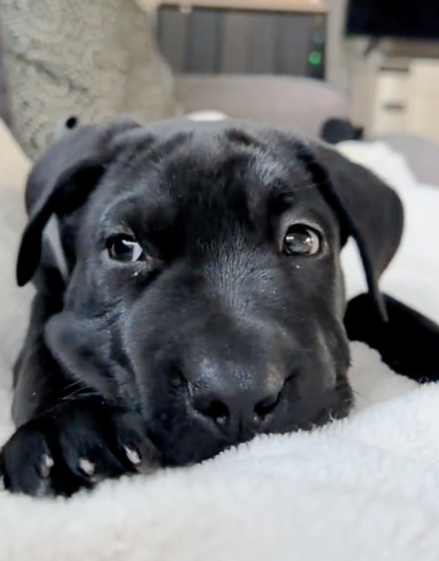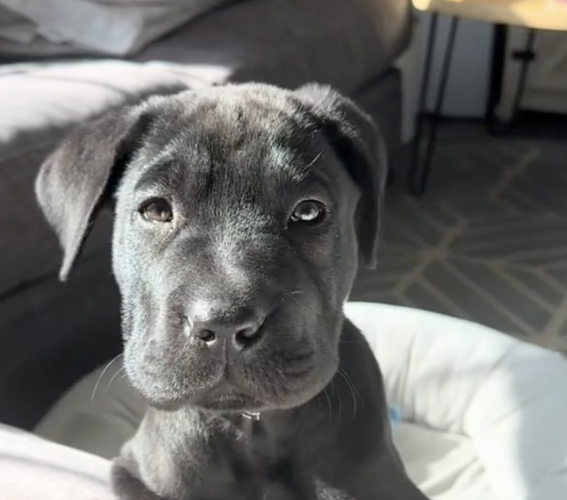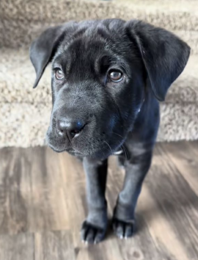 This took her completely by surprise. At first glance, he had the typical sleek black coat of a Labrador, but as he grew, his Cane Corso traits became undeniable.