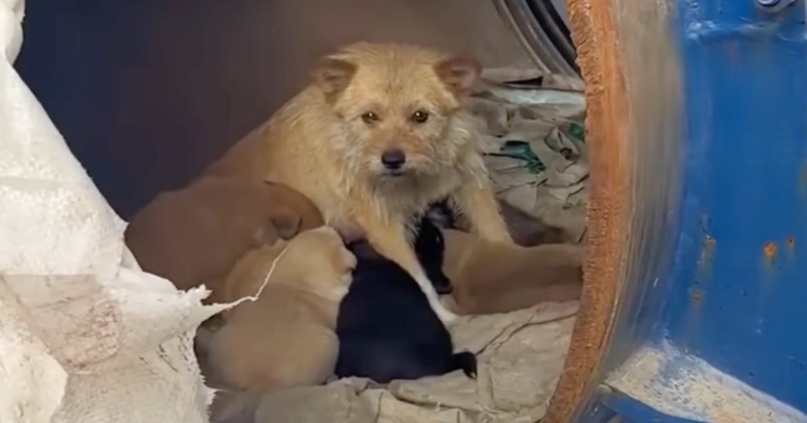 Nestled in a small, makeshift den, her puppies lay curled up, safe in the warmth of their mother’s love.