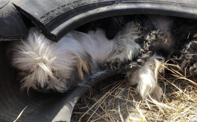 A man who had taken an accidental detour spotted a white Terrier lying on top of a trash pile near the tire. Concerned by the dog’s condition and the brutal surroundings, he quickly called Faith Easdale, an experienced rescuer with Dream Fetchers: Project Rescue.