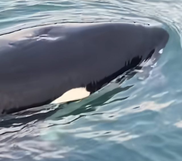 While guiding his boat through the serene waters, Dornellas noticed something unusual. At first glance, it appeared to be a typical wildlife scene, but as he looked closer, he realized an otter was frantically swimming toward his boat. The small creature was fleeing for its life, with a killer whale—identified by its distinctive dorsal fin—swiftly closing in. The tension in the air was undeniable as the whale’s shadow moved through the water, and the otter’s frantic attempts to escape were becoming more desperate.