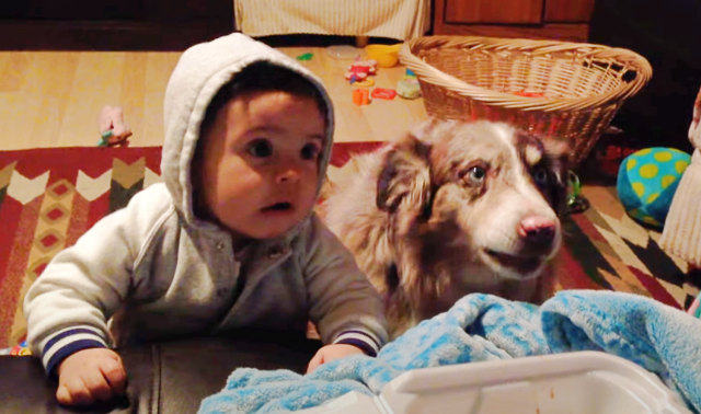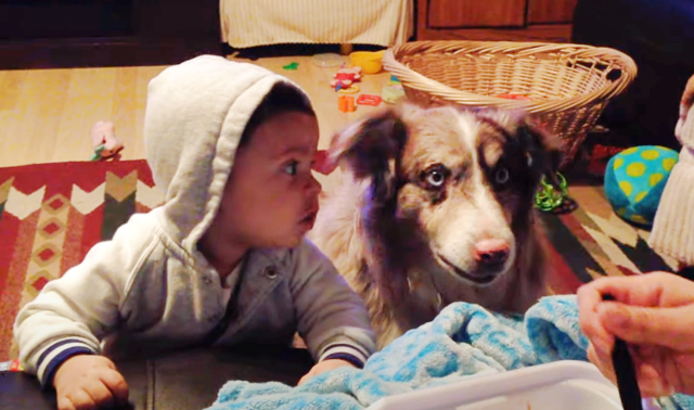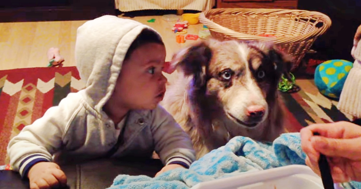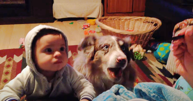 Meanwhile, baby Sam sat nearby, catching on to the situation. As Patch wowed everyone with his canine vocabulary, Sam’s face slowly registered the competition. It was clear he wasn’t thrilled about being outshined by his furry sibling.