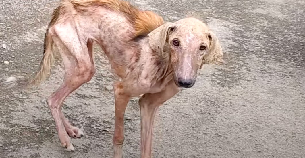 Animal Aid Unlimited rescuers came across an “old” dog asking for help. Her mange was so bad she barely had any fur left, and she just looked miserable.