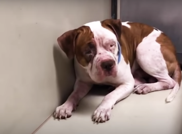 Carson, a gentle and sweet-natured Pit Bull, found himself in one of these shelters, abandoned by his family. His owners decided they could no longer care for him, partly due to his allergies that had led to skin issues. Despite his health concerns, Carson was a well-behaved dog with a good temperament. But the chaotic shelter environment proved too much for him to handle. He was completely terrified. He sought refuge in the corner of his kennel, where he lay trembling uncontrollably. Carson’s constant shaking broke the hearts of everyone who saw him, as he appeared too scared to even rest.