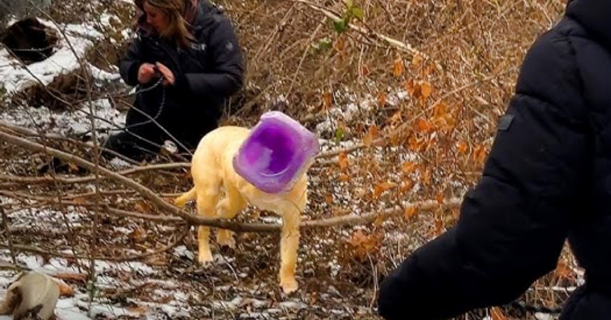 At one point, he was seen making his way back toward a nearby area. Then, in a heart-stopping moment, the dog was cornered by two rescuers. What followed was nothing short of a transformation. The dog thrashed about in the brush, and his movements actually loosened the bucket from his head. He freed himself!