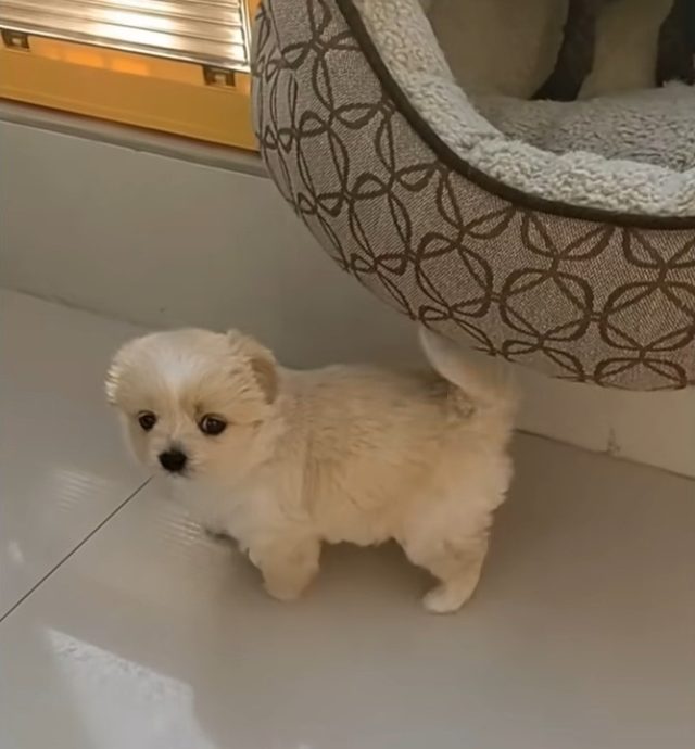 Fate intervened when a Good Samaritan happened to be on his way to a barber shop. As he walked down the street, he noticed a tiny white puppy struggling to move, shaking from the cold.