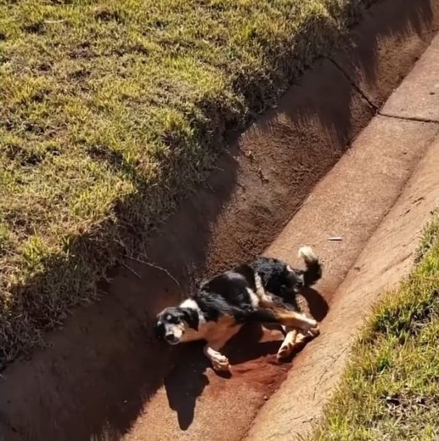 In moments of despair, dogs rely on human kindness, hoping for compassion in their darkest hours. This was the case for an injured dog who found himself helplessly trapped in a dry drain, longing for someone to notice him.