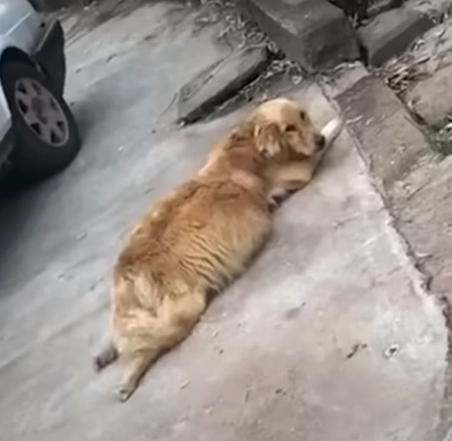 While many passersby turned a blind eye, this man felt compelled to act. Upon first seeing the Golden Retriever with its swollen belly, he initially thought it was due to pregnancy. However, a closer inspection revealed a more alarming health issue.