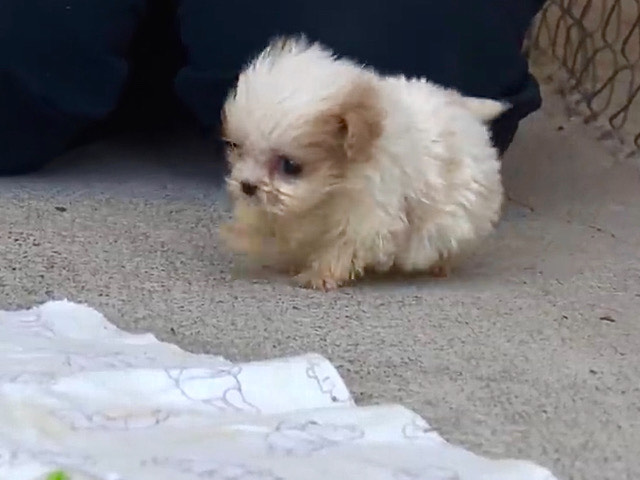 This was the reality for Ruggles, a tiny Shih Tzu puppy who had never known kindness. Born into a puppy mill, he had endured a rough start to life, never experiencing comfort or companionship. When rescuers from the Cherokee County Animal Shelter found him, he was so small he could fit in an adult’s hand.