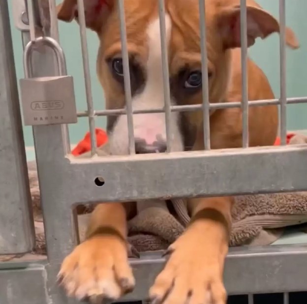 The friendly pup was desperate for attention and quickly figured out how to get people to stop at her door. If she stretched her paws through the kennel bars, passersby would often pause and begin playing games with her.
