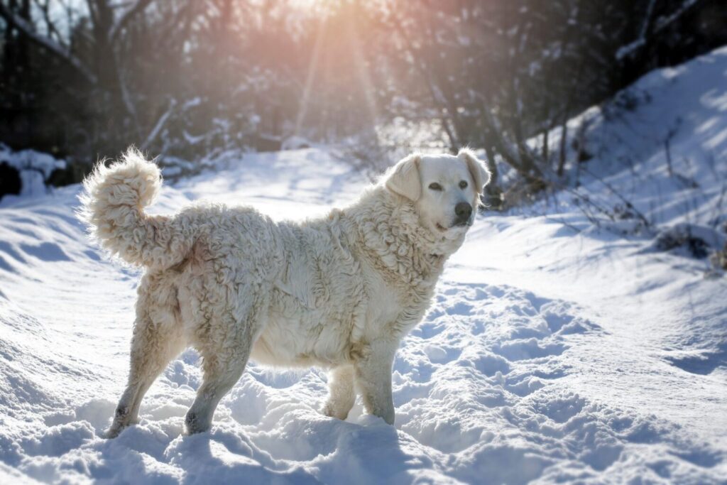 The Slovensky Cuvac is a large dog breed with a muscular build and a thick white coat that helps it blend in with the snow in the mountainous regions of Slovakia. This breed has a strong and sturdy appearance, with a broad chest and powerful legs that allow it to move quickly and easily over rough terrain.