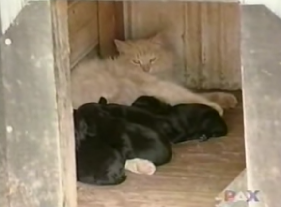 As the video below states, “Miss Kitty’s world was shattered. She was completely lost in her grief.” As if fate intervened, Smoochy gave birth to a litter of Cocker Spaniel puppies only days after Miss Kitty’s tragic loss. And even though Miss Kitty and Smoochy were friendly, no one could believe what the cat did next for Smoochy and her babies in need!