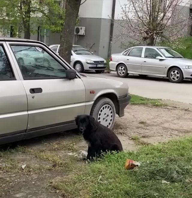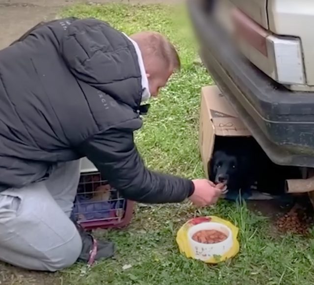 She sniffed them, saw they were unharmed, and then lay back down under a nearby car, still unsure if she should trust the rescuer.