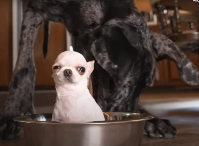 Despite the staggering height difference, the two dogs got along beautifully. Semler admitted she was nervous at first. Pearl might be fearless, but Reginald’s sheer size was enough to give anyone pause. To her surprise, Reggie was not only careful—he was incredibly aware of the tiny dog beneath him. “He was very cautious, like he didn’t step on her or anything,” said Reggie’s owner, Sam Johnson Reiss. While Reginald was more interested in the Guinness film crew, he was gentle and polite with Pearl, never once forgetting how small she was.