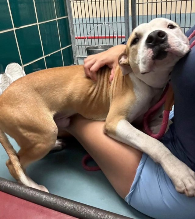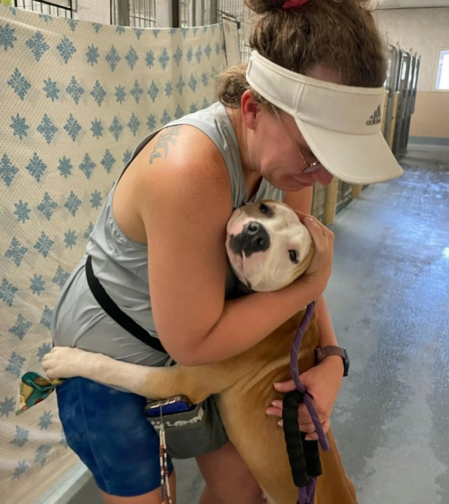 Just as Tanner’s future looked grim, a local dog advocate named Madeline Garvis Smith paid him a visit. From the moment she met him, Tanner’s affectionate personality shone through. He wrapped his front legs around her in a tender hug as if to say, “Please don’t leave me.” Madeline was instantly smitten. She shared Tanner’s story online, describing him as a sweet dog who was “pure love… almost starved for attention.” The shelter staff echoed her feelings—Tanner wasn’t just another stray, he was a lovebug waiting for his second chance.
