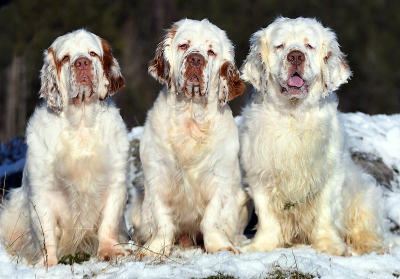 Due to their dense coat, Clumber Spaniels require regular grooming to prevent matting and keep their coat in good condition. They also require daily exercise to keep them in good health and prevent obesity, as they are prone to weight gain.