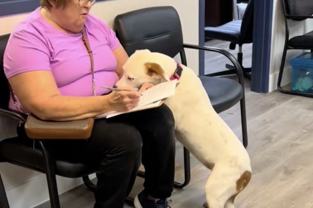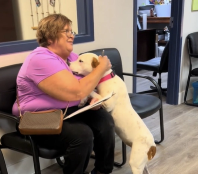 When the woman who would become her new owner arrived at the shelter, Veronica seemed to know something was different. As the adoption paperwork was being filled out, the sweet dog quietly moved closer. With gentle steps, she approached the woman and rested her head softly in her lap, offering what could only be described as a hug.