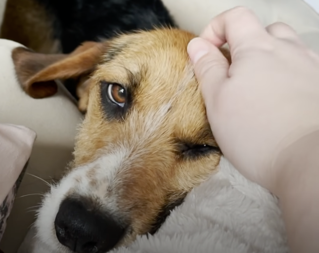 Despite this, Kelly’s family remained patient. Slowly, their kindness began to chip away at the walls Walt had built to protect himself. One day, something small but significant happened—Walt chose to get onto the bed. For most dogs, this might seem normal. But for Walt, it was a moment of trust. Choosing a soft place instead of the floor signaled that he was starting to feel safe.