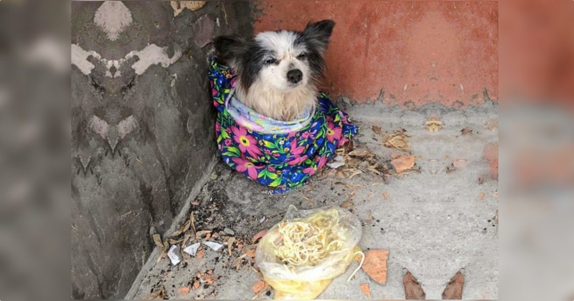 On a cold, unforgiving day, a dog was found curled up alone in a quiet corner—waiting. Wrapped only in a thin towel and left with an untouched bag of broth and noodles, he remained exactly where his former owner had abandoned him, holding onto the belief that they would return. But his loyalty wasn’t returned. The owner never came back.